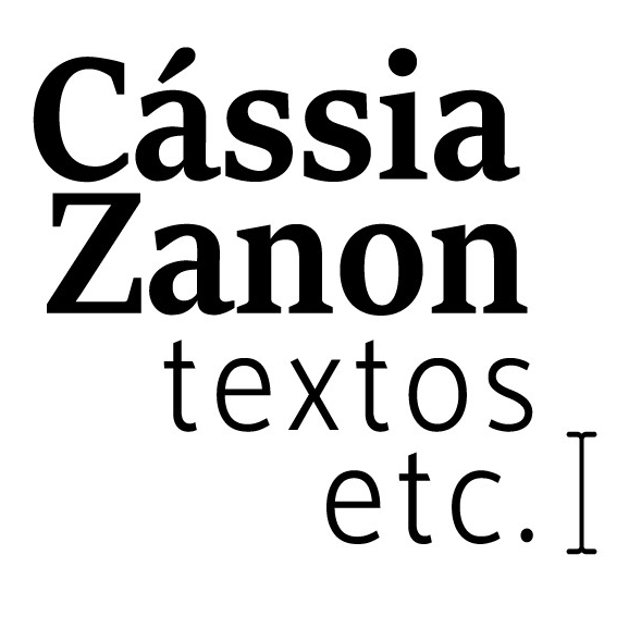 Um ponto, porém, todas as atividades têm em comum: o texto. De onde, a marca nova: Cássia Zanon | textos etc, criada com o Vitor Soares, um jovem profissional talentoso e estudioso que faz tanta coisa (bem) que vai ter bem mais dificuldade do que eu para definir como ganha a vida.