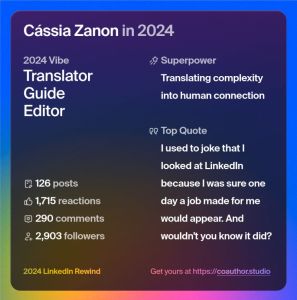 Segundo o resumo feito do meu perfil do LinkedIn pelo coauthor.studio, meu superpoder é “traduzir complexidades em conexões humanas”. Talvez ainda não seja, mas juro que estou trabalhando pra isso.